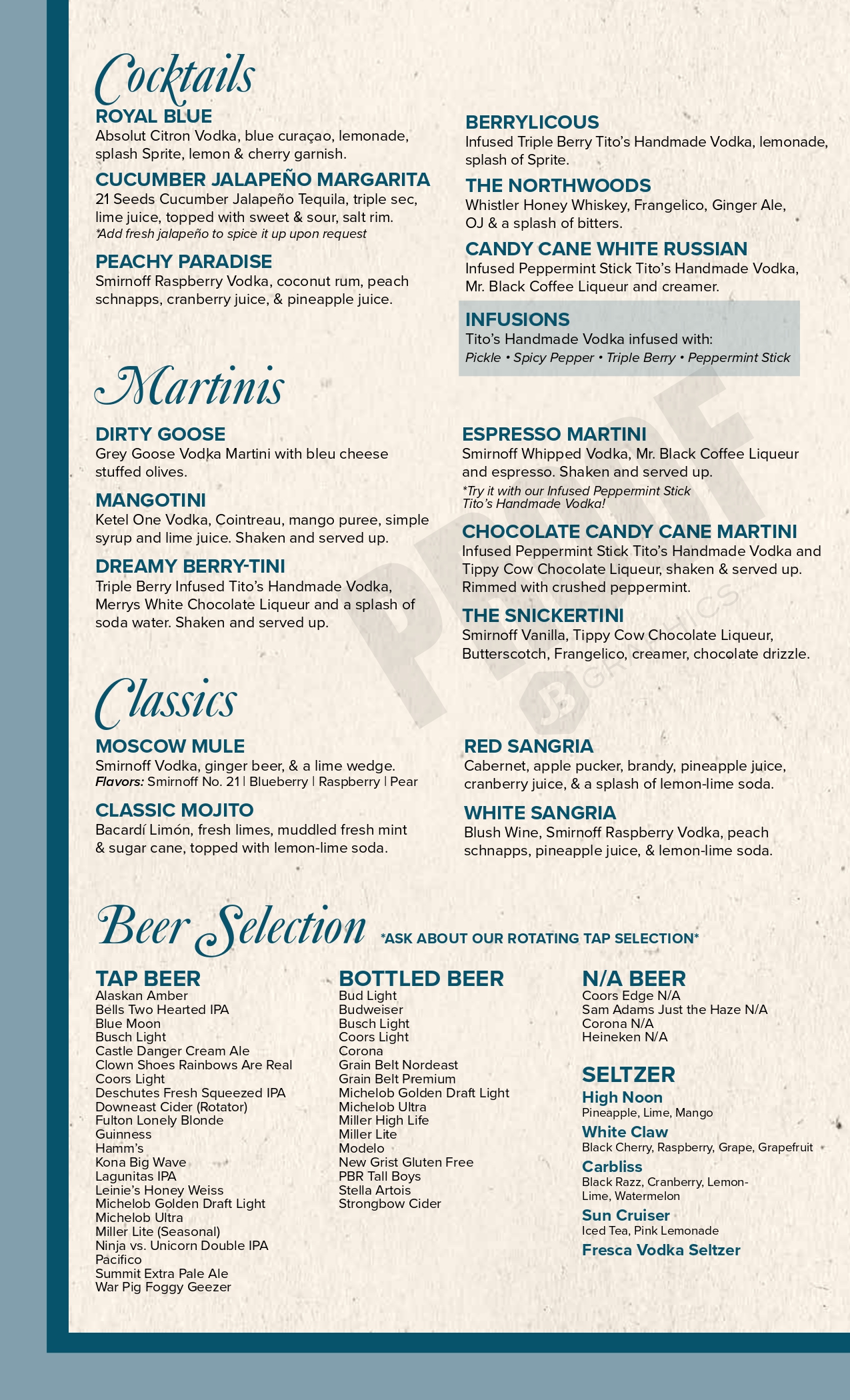 We impose a surcharge of 3% on the transaction amount on credit products, which is not greater than our cost of acceptance. We do not surcharge debit cards, prepaid gift cards, or gift cards. Menu prices may be subject to change based on market value